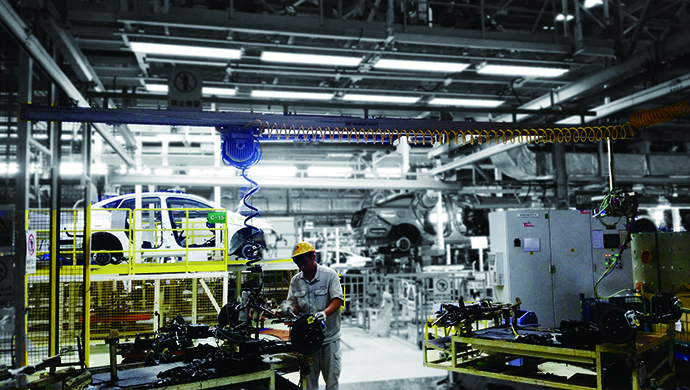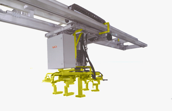 采用氣動(dòng)平衡吊為系統(tǒng)主機(jī),配合抓取夾具及軌道系統(tǒng),可實(shí)現(xiàn)省力化操作
